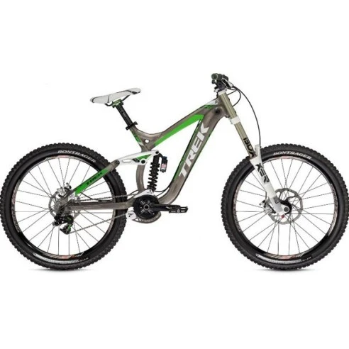 Bicicleta de descenso Trek Session 8 del 2014. Cuadro: Alpha Platinum Aluminium w/ABP Convert DH. Horquilla: RockShox Boxxer Race w/coil spring, 200mm. Amortiguador: Fox Vanilla RC. Frenos de disco: Avid CODE R hydraulic disc. Cambio: SRAM X9, Type 2.