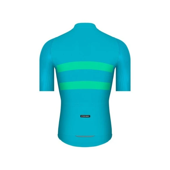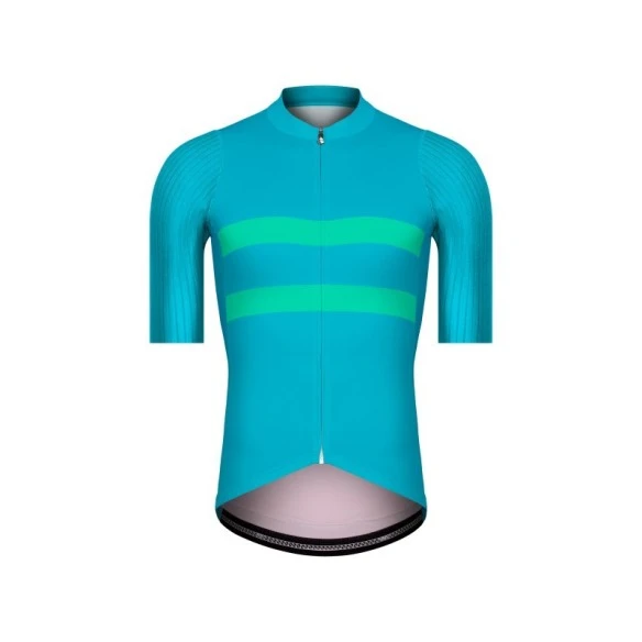 El patrón se elabora teniendo en cuenta tanto la velocidad como el diseño, los paneles frontales y traseros de tejido técnico Endurance se ajustan a la figura del ciclista con la compresión adecuada, las mangas aerodinámicas de tejido técnico Neoair acanalado mejoran la resistencia contra el aire y se adaptan completamente al brazo del ciclista evitando cualquier tipo de incómoda arruga y la terminación del puño no hace uso de costura o goma al utilizar la tecnología de corte free cut. La zona interior del cuello se remata con un tapacosturas personalizado que mejora la estética y acabado evitando que se deforme con el paso del tiempo.